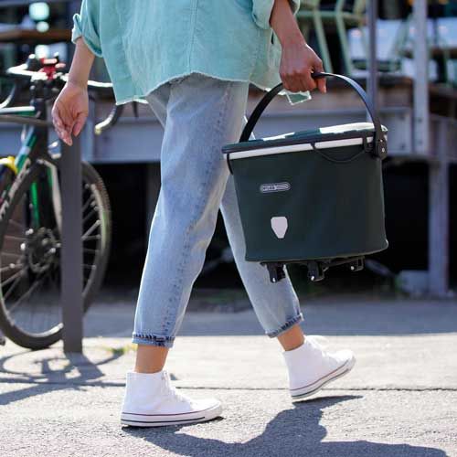 Proprio come il suo predecessore, il sistema Top-Lock è privo di fastidiosi elementi di fissaggio al portapacchi stesso e può essere fissato in pochi secondi con una leggera pressione verso il portapacchi. La rimozione è altrettanto veloce. A tal fine, è necessario premere solo le due leve di sgancio. Le speciali manopole sul fondo della borsa e i cuscinetti antiscivolo impediscono alla borsa di scivolare e rendono il Top-Lock un sistema particolarmente stabile.