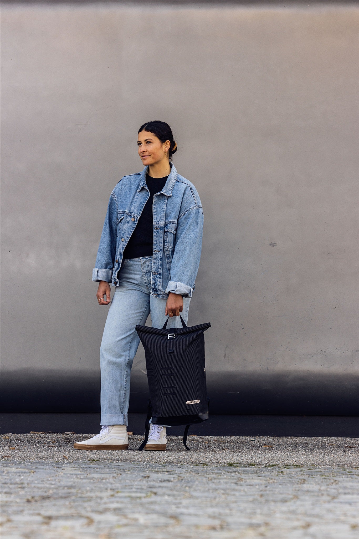 Zaino di alta gamma con il massimo livello di sicurezza: il filato riflettente integrato su tutta la superficie trasforma l'elegante zaino in una guardia del corpo personale al buio.